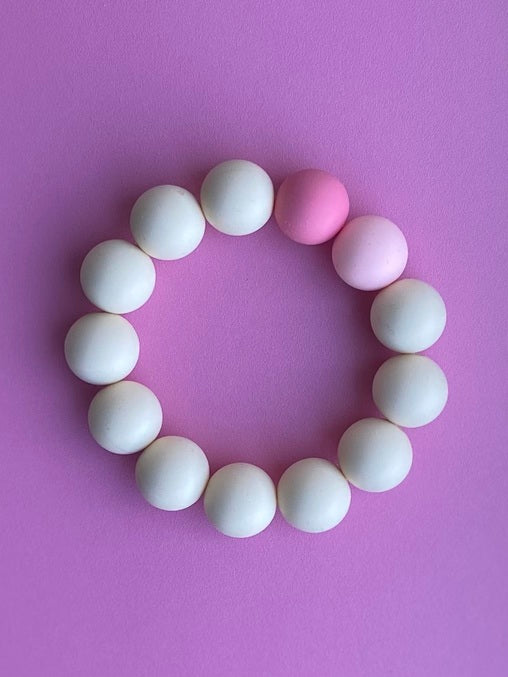 Armband Beige Rosa är ett vackert och sött armband av mjuka silikonpärlor. Ger din stil färg, glädje och personlighet! Ett lättburet omtyckt armband som passar lika bra till jobb, vardag eller fest! Finns i många härliga färgkombinationer!