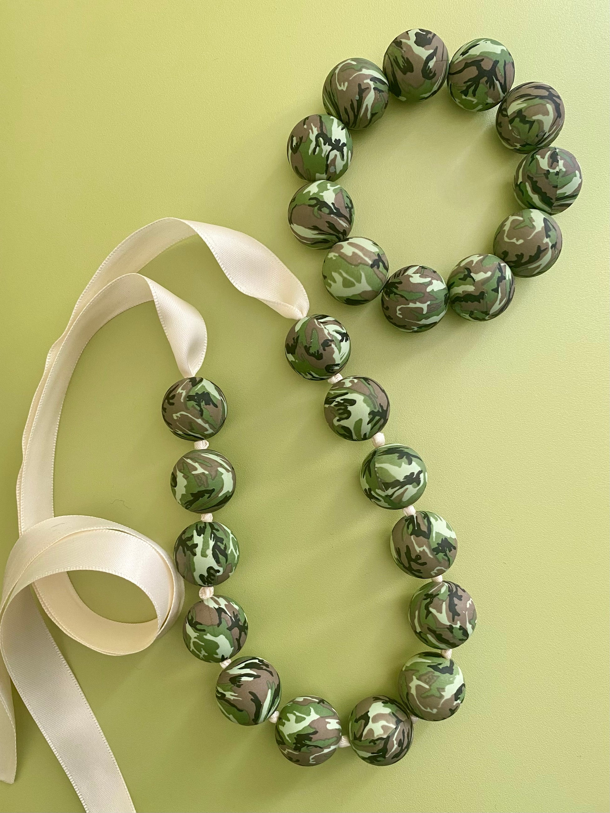 Armband Maxi Camo är ett färgglatt statement armband av mjuka stora silikonpärlor. Otroligt mjuka att bära på armen. Ger din stil färg, glädje och personlighet! En cool accessoar till jobb, vardag eller fest! Finns i många härliga färgkombinationer! Nu finns det även tillhörande halsband - köp som set för ett riktigt bra paketpris. Finns även matchande ring.