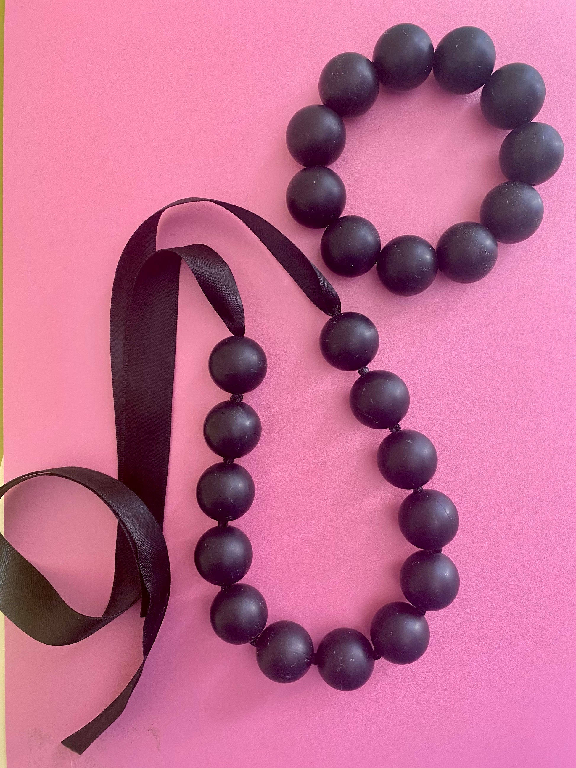Armband Maxi Svart är ett färgglatt statement armband av mjuka stora silikonpärlor. Otroligt mjuka att bära på armen. Ger din stil färg, glädje och personlighet! En cool accessoar till jobb, vardag eller fest! Finns i många härliga färgkombinationer! Nu finns det även tillhörande halsband - köp som set för ett riktigt bra paketpris. Finns även matchande ring.