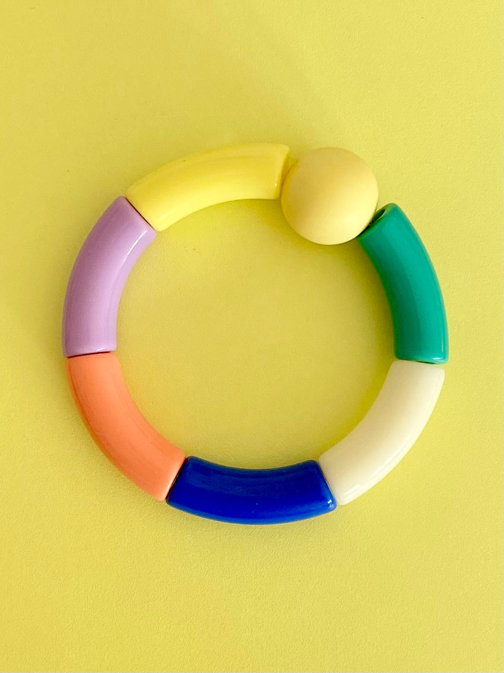 Busiga härliga färger tillsammans! Ett lätt färgglatt armband av böjda pärlor i plast i läckra pastellfärger. Ger din stil färg, glädje och personlighet! En cool accessoar till jobb, vardag eller fest! Finns i många härliga färgkombinationer!