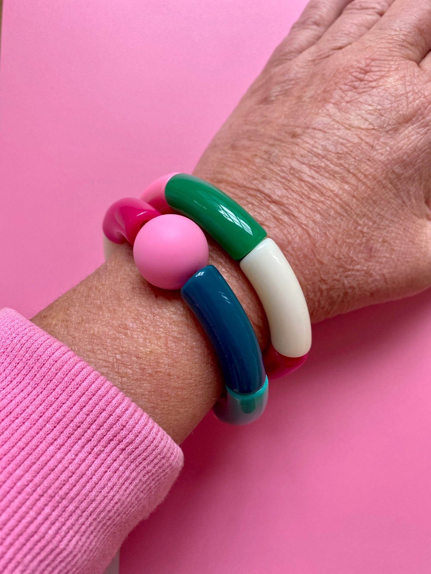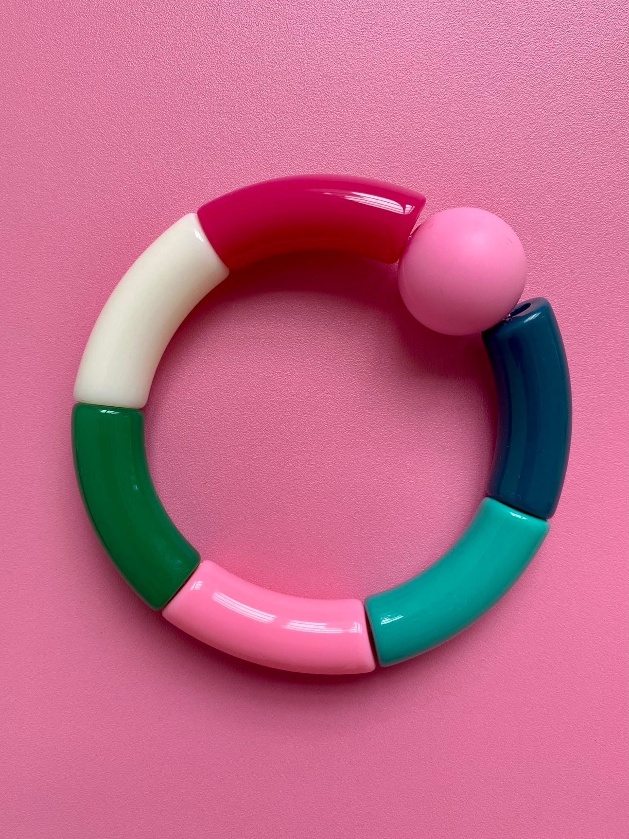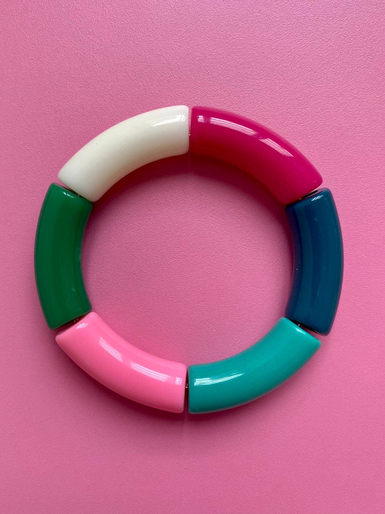 Spana in läckra Armring Tivoli! Ett lätt färgglatt armband av böjda pärlor i plast i en karusell av rosa, cerise o gröna färger. Ger din stil färg, glädje och personlighet! En cool accessoar till jobb, vardag eller fest! Finns i många härliga färgkombinationer! Nytt lägre pris!